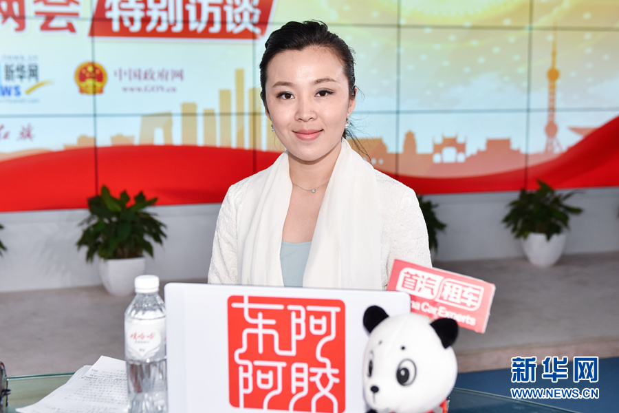 3月12日,全國人大代表,運(yùn)城市市長王清憲做客新華網(wǎng)2016全國兩會(huì)特別訪談,與新華網(wǎng)網(wǎng)友在線交流。圖為新華網(wǎng)主持人張姣。新華網(wǎng) 付宇鵬 攝