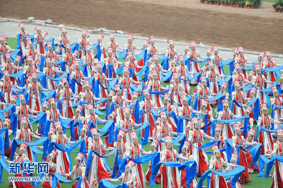 8月8日,內(nèi)蒙古自治區(qū)成立70周年慶祝大會在呼和塔拉內(nèi)蒙古少數(shù)民族群眾文化體育運(yùn)動中心舉行。圖為群眾行進(jìn)表演。新華網(wǎng)記者 陳杰 攝