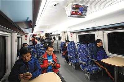 5分鐘后列車發(fā)車,有不少人開始拿出手機(jī)上網(wǎng),“京通號”動(dòng)車組內(nèi)也有供乘客免費(fèi)連接的WiFi,只需加入名為BJSJTL-WiFi的網(wǎng)絡(luò),注冊過程不超1分鐘。