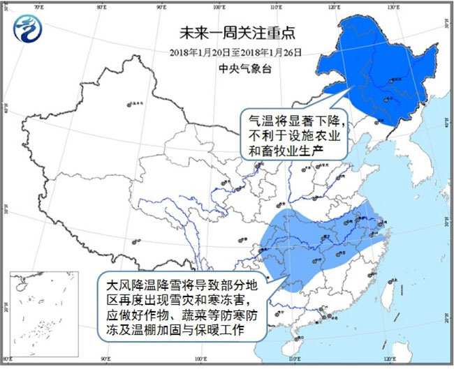 受冷空氣頻繁活動影響,低溫天氣持續(xù),較強(qiáng)降溫不利于設(shè)施農(nóng)業(yè)和畜牧業(yè)生產(chǎn)。要做好設(shè)施溫棚、畜舍的清雪加固和防寒保暖工作,防止棚舍受損和設(shè)施作物、牲畜受凍。本輪雨雪天氣利于北方麥田增墑保墑,但大風(fēng)降溫降雪將對設(shè)施農(nóng)業(yè)、越冬作物、露地蔬菜、經(jīng)濟(jì)林果等產(chǎn)生不利影響,部分地區(qū)可能再度出現(xiàn)雪災(zāi)和寒凍害。應(yīng)加強(qiáng)麥田管理,采用秸稈覆蓋、施農(nóng)家肥等措施保墑提溫,防御麥苗遭受凍害。