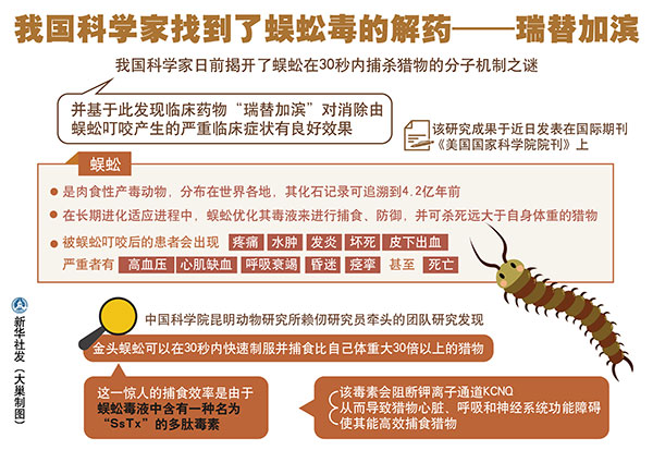 圖表:我國科學(xué)家找到了蜈蚣毒的解藥——瑞替加濱 新華社發(fā) 大巢制圖