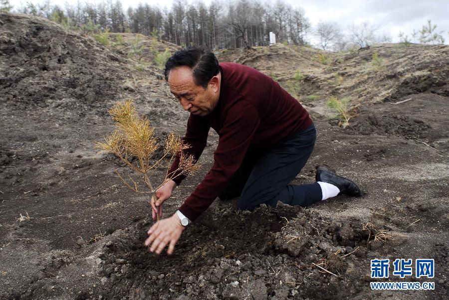 2006年5月1日,在黑龍江省齊齊哈爾市拜泉縣,王樹(shù)清在檢查小樹(shù)苗。新華社發(fā)