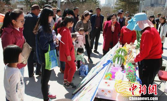 資料圖:圖為西寧市兒童福利院工作人員義賣兒童手工作品。薛默 攝