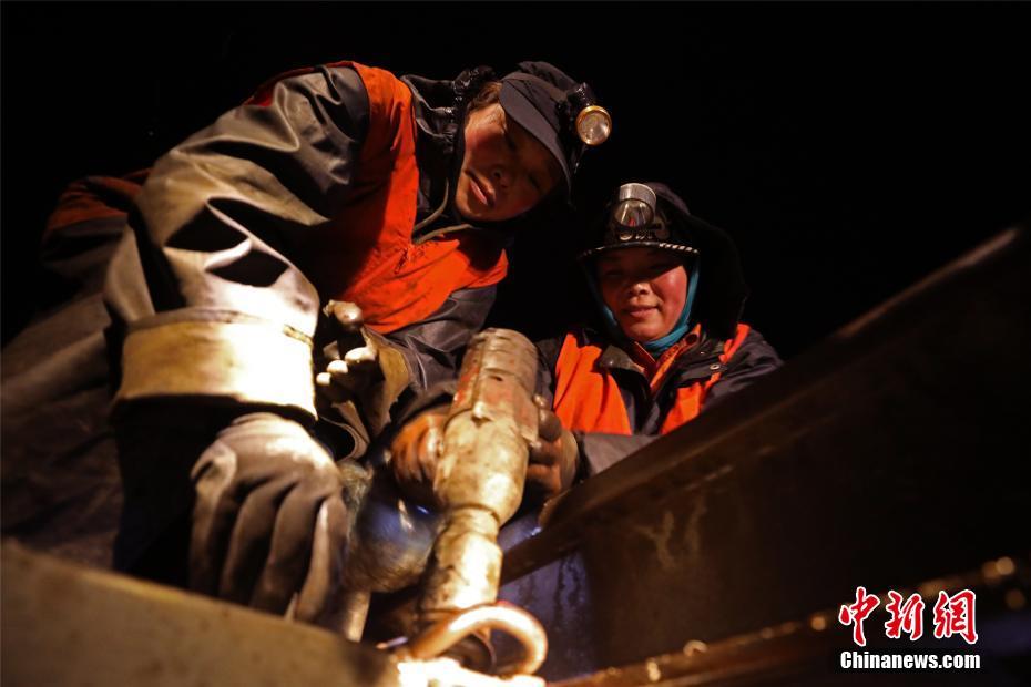 兩位鐵路職工協(xié)力合作擰緊枕木螺栓。文/汪翰 李利群 圖/汪翰