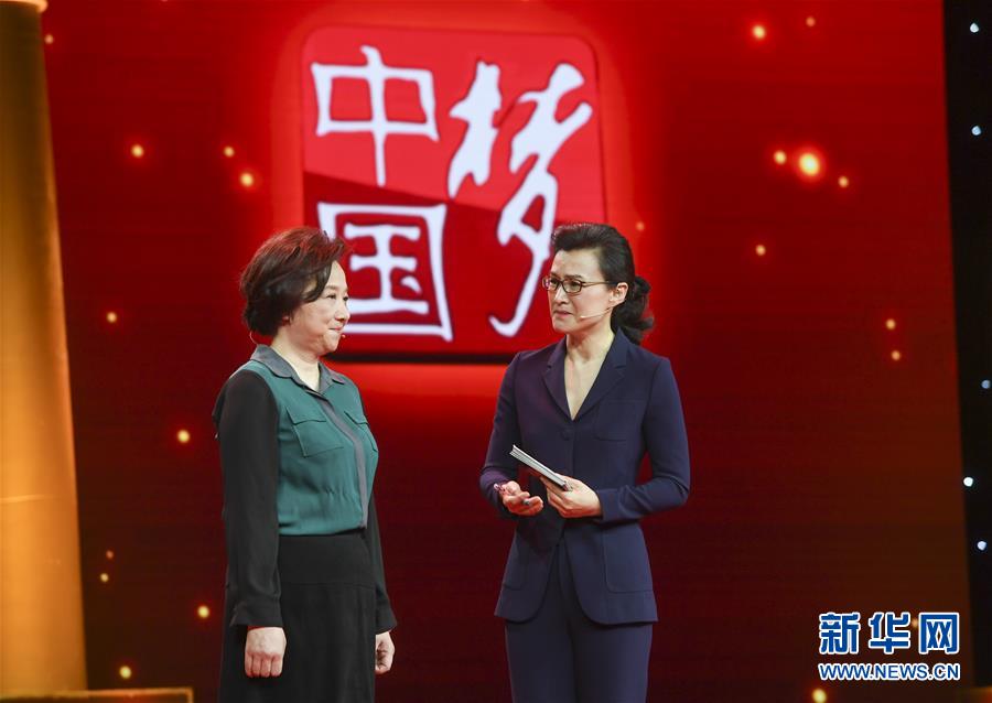 鐘揚(yáng)的妻子張曉艷(左)在“時代楷?!卑l(fā)布儀式現(xiàn)場(3月26日攝)。新華社發(fā)