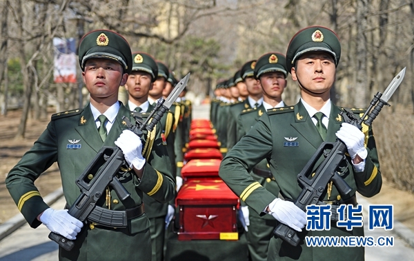 3月28日上午,中韓雙方在韓國仁川國際機(jī)場莊嚴(yán)舉行第五批在韓中國人民志愿軍烈士遺骸交接儀式。民政部副部長高曉兵率代表團(tuán)出席交接儀式,中韓雙方代表現(xiàn)場簽署交接書,確認(rèn)交接20位中國人民志愿軍烈士遺骸及相關(guān)遺物。中方現(xiàn)場舉行悼念儀式后,中國駐韓國大使邱國洪為志愿軍烈士遺骸覆蓋國旗,隨著高曉兵副部長“祖國接你們回家!”的呼喚,全體中方人員向志愿軍烈士三鞠躬,中國人民解放軍禮兵護(hù)送烈士遺骸登上空軍專機(jī),啟程,回國。解放軍空軍專機(jī)進(jìn)入中國領(lǐng)空后,兩架戰(zhàn)斗機(jī)全程護(hù)航,用空軍特有的方式向志愿軍烈士致敬。專機(jī)抵達(dá)后,組織實(shí)施了莊重的迎接儀式。