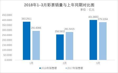 據(jù)財(cái)政部網(wǎng)站消息,3月份,全國共銷售彩票401.87億元,比上年同期(簡稱“同比”)增加22.54億元,增長5.9%。1月至3月累計(jì),全國共銷售彩票1041.75億元,同比增加89.27億元,增長9.4%。