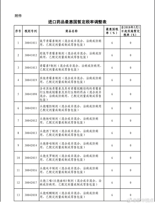 新華網(wǎng)北京4月23日電 財(cái)政部關(guān)稅司23日發(fā)布消息,5月1日起我國將取消包括抗癌藥在內(nèi)的28項(xiàng)藥品進(jìn)口關(guān)稅。調(diào)整后,除安宮牛黃丸等我國特產(chǎn)藥品、部分生物堿類藥品等少數(shù)品種外,絕大多數(shù)進(jìn)口藥品,特別是有實(shí)際進(jìn)口的抗癌藥均將實(shí)現(xiàn)零關(guān)稅。(記者郁瓊源) ????(據(jù)新華社“新華視點(diǎn)”微博報(bào)道)?