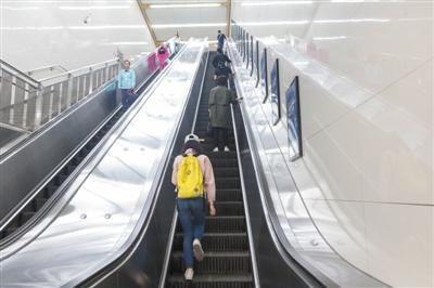 昨日(25日),北京磁器口地鐵站自動扶梯,行人“左行右立”。實(shí)習(xí)生 陳婉婷 攝