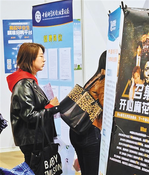 在招聘會(huì)現(xiàn)場(chǎng),身著正裝的周源走走轉(zhuǎn)轉(zhuǎn),仔細(xì)閱讀著用人單位的招聘海報(bào)。作為一名中文系碩士應(yīng)屆畢業(yè)生,周源手里已經(jīng)有了好幾份錄取通知書(shū),她仍然顯得有點(diǎn)焦慮。還有2個(gè)多月就要畢業(yè)了,是回老家沈陽(yáng)還是留在北京,她坦言還沒(méi)有想好。回到老家離父母更近一些,在大城市里發(fā)展機(jī)會(huì)更多,究竟如何取舍,她遲遲做不出決定。