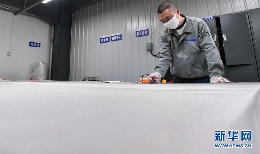 在四川北川天訊新材料有限公司,工作人員對導(dǎo)電布測電阻(3月9日攝)。 新華社記者 薛玉斌 攝