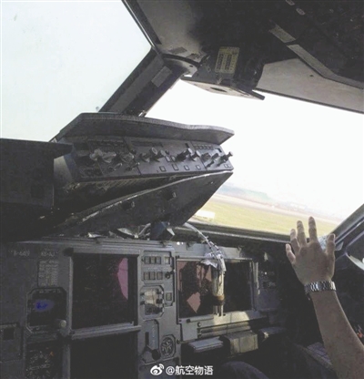 玻璃脫落后的駕駛艙