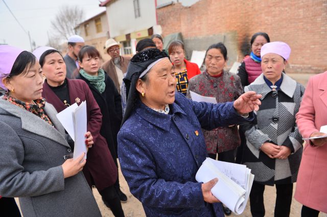 4月10日,馬蘭芳(前右)帶著部分黨員走到村頭,給沒能參加當日“小院課堂”的黨員群眾講政策。 新華社記者 聶建江 攝