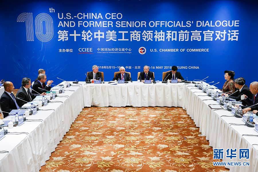 5月15日,第十輪中美工商領(lǐng)袖和前高官對話開幕式在北京舉行。新華社記者 沈伯韓 攝