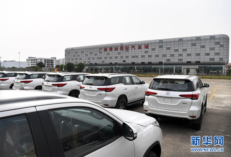 停放在廣西欽州保稅港區(qū)國際汽車城外的到岸進(jìn)口整車(2017年4月13日攝)。新華社記者 申宏 攝