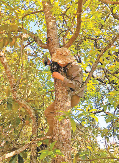 中國科學(xué)院昆明動(dòng)物研究所研究人員在安放紅外相機(jī),進(jìn)行鳥類監(jiān)測。中國科學(xué)院昆明動(dòng)物研究所鳥類學(xué)組供圖