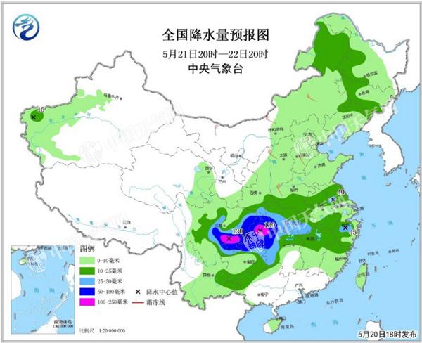 預(yù)計21日08時至22日08時,四川盆地大部、重慶大部、貴州北部、陜西南部、河南南部、湖北西部和東南部等地的部分地區(qū)有大到暴雨,其中,四川盆地東部、重慶西部的局地有大暴雨(100~140毫米);上述部分地區(qū)伴有雷電、短時強(qiáng)降水(30~50毫米,局地70毫米以上)、雷暴大風(fēng)等強(qiáng)對流天氣。