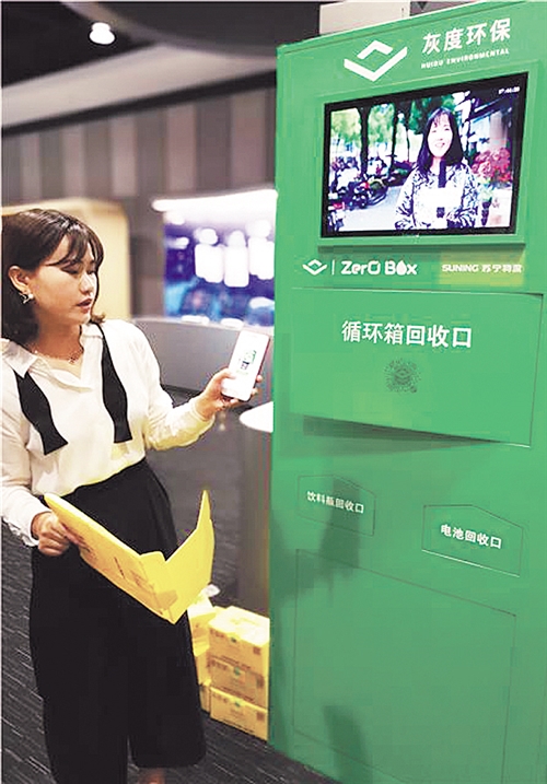 江蘇南京蘇寧物流推出的共享快遞盒提高了物流運輸效率,并可循環(huán)使用。
