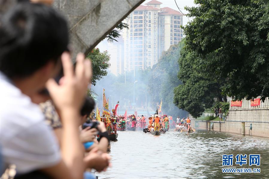 6月14日,觀眾在廣州市天河區(qū)一處河道旁等待龍舟通過。當日,廣州市天河區(qū)舉行一場熱鬧歡快的龍舟活動,來自多個村莊“走親戚”的龍舟隊參加。按廣州的傳統(tǒng)習俗,每年農(nóng)歷五月初一至初五,各村的龍舟隊要到周圍村落“走親戚”。走親戚的龍舟隊到來時,受訪村子要準備好龍舟飯招待來客?;顒赢斕欤Q炮敲鑼,一派喜慶氣氛。新華社記者 張加揚 攝