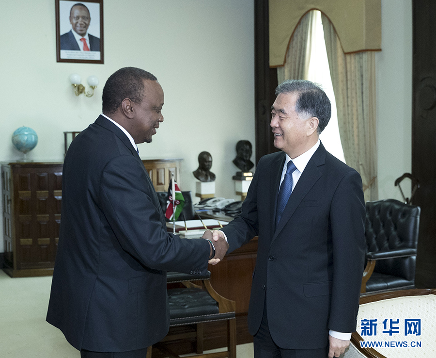 6月16日至19日,應肯尼亞國民議會議長穆圖里邀請,全國政協(xié)主席汪洋對肯尼亞進行正式友好訪問。這是6月19日,肯尼亞總統(tǒng)肯雅塔會見汪洋。新華社記者丁海濤攝