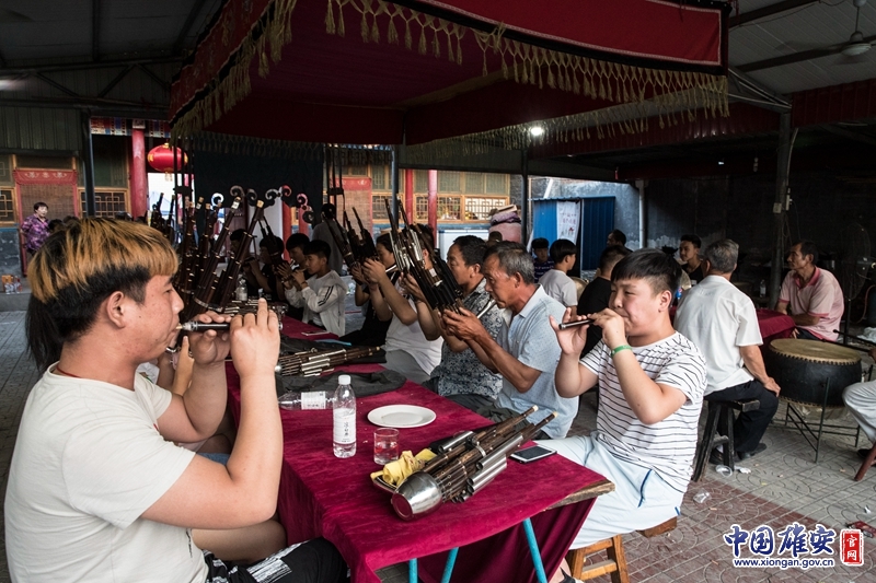 每年農歷四月十九、二十、二十一,雄安新區(qū)安新縣圈頭村,男女老少都會聚集在村里的藥王廟,音樂會的傳人們演奏起各式傳統(tǒng)曲目,以此來祭祀藥王,感念千百年來對當?shù)卮迕竦挠幼o。