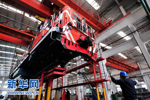 在中國鐵路西安局集團有限公司寶雞機車檢修廠聯(lián)合檢修庫內,職工們正緊鑼密鼓地進行機車落車組裝作業(yè)。
