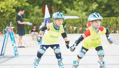 北京市通州區(qū)運河文化廣場,小朋友在滑輪滑。王丹楓攝
