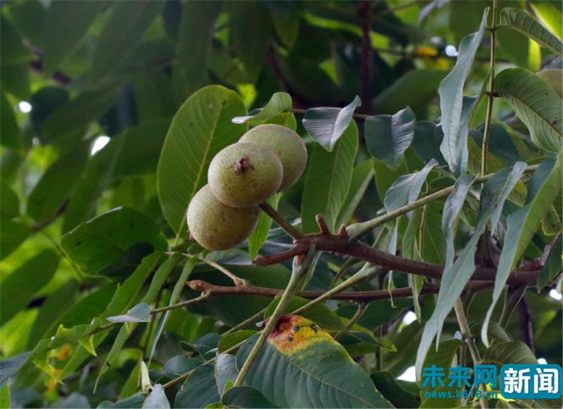 崇仁村長(zhǎng)勢(shì)喜人的核桃樹(shù)已掛果。未來(lái)網(wǎng)記者 程婷 攝
