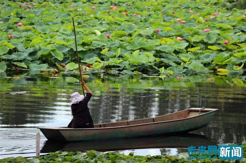 洱源水質(zhì)大為改善的茈碧湖,碧波蕩漾,荷葉田田。未來(lái)網(wǎng)記者 程婷 攝