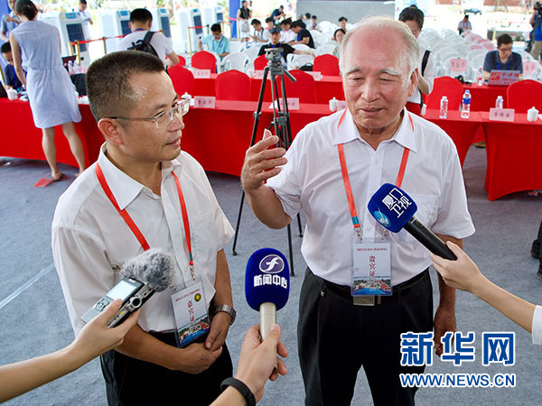 8月5日,在福建晉江舉行的福建向金門供水工程通水現(xiàn)場會上,來自金門的王再生老人(右)和福建省水投集團(tuán)公司副總經(jīng)理朱金良(左)接受采訪。 新華社記者 姜克紅 攝