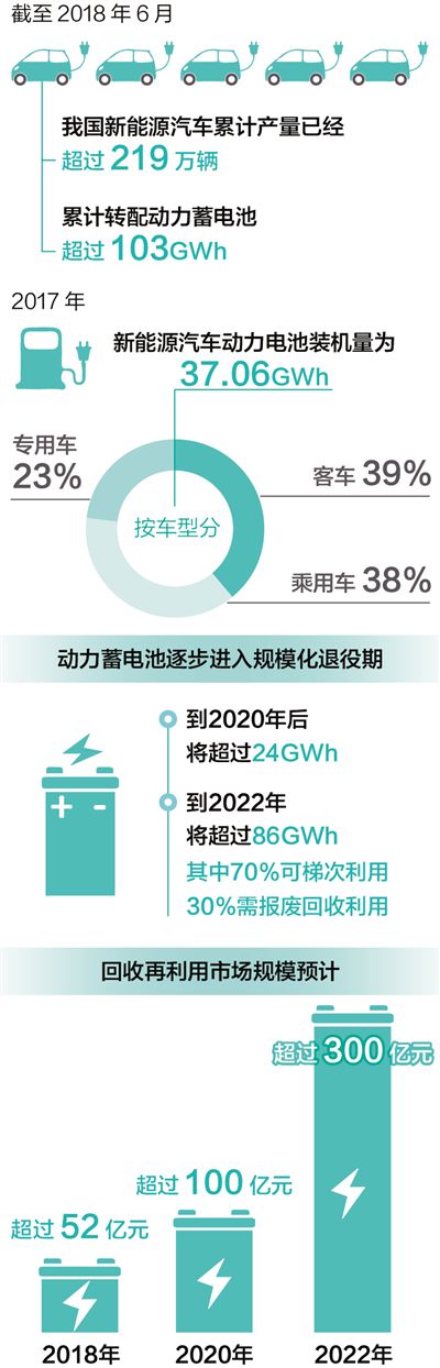 在政策和市場環(huán)境的雙重因素影響下,我國新能源汽車產(chǎn)量和保有量都已超全球總量的一半。據(jù)行業(yè)專家從企業(yè)質(zhì)保期限、電池循環(huán)壽命、車輛使用工況等方面綜合測算,2018年后,我國新能源動力蓄電池將進(jìn)入規(guī)?;艘燮?,預(yù)計(jì)2020年累計(jì)退役量將超過20萬噸。如果這些電池處置不當(dāng),一方面會給社會帶來環(huán)境影響和安全隱患,另一方面也會造成資源浪費(fèi)。