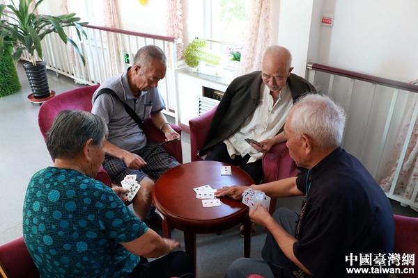 社區(qū)內(nèi)的老人們正在進(jìn)行棋牌游戲。(中國臺灣網(wǎng) 尹賽楠 攝)