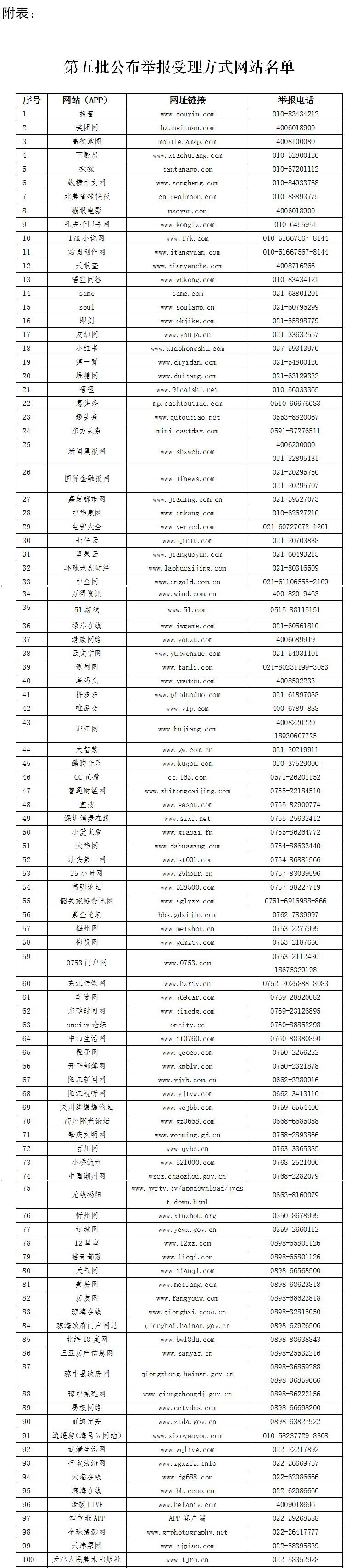 此次公布舉報受理方式的網(wǎng)站既包括新聞網(wǎng)站、商業(yè)網(wǎng)站、政府網(wǎng)站,又包括社區(qū)、論壇等互動平臺以及搜索引擎、電商、視頻直播、社交、游戲、APP應(yīng)用程序等互聯(lián)網(wǎng)應(yīng)用平臺,內(nèi)容涉及新聞、財經(jīng)、旅游、教育、文學(xué)、醫(yī)療衛(wèi)生、生活服務(wù)等多個方面,其中,抖音、高德地圖等網(wǎng)民使用率較高的應(yīng)用軟件,拼多多、唯品會等國內(nèi)電商平臺,美團、下廚房等生活服務(wù)類網(wǎng)站在公布名單之列。