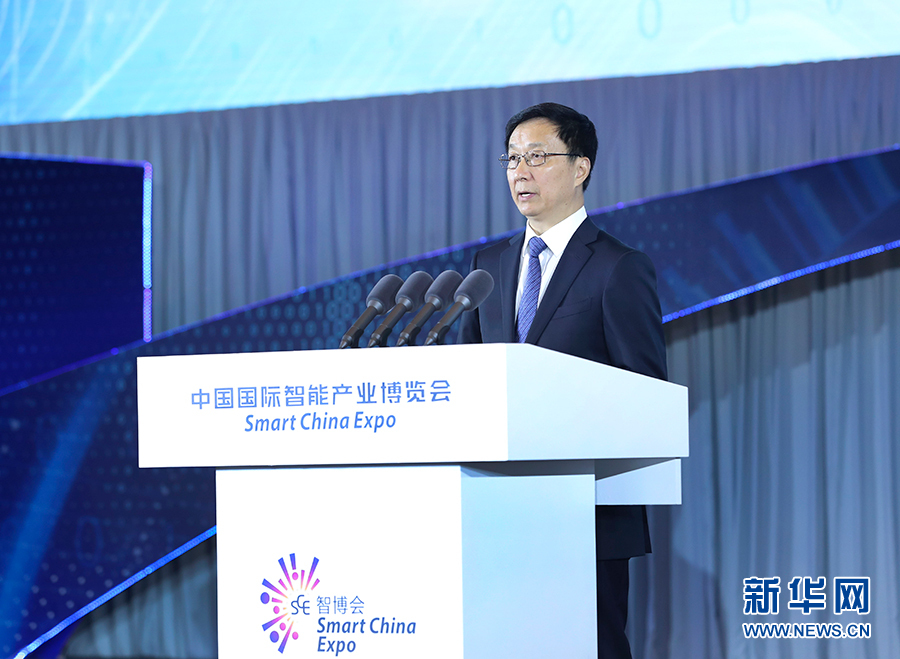 8月23日,首屆中國國際智能產(chǎn)業(yè)博覽會在重慶開幕。中共中央政治局常委、國務(wù)院副總理韓正出席開幕式,宣讀習(xí)近平主席的賀信并致辭。新華社記者 龐興雷 攝