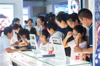 8月24日,太原市的山西省眼科醫(yī)院,暑假臨近尾聲,中小學生在家長的陪同下檢查視力,扎堆配眼鏡。圖/視覺中國