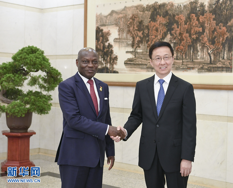 9月5日,中共中央政治局常委、國務(wù)院副總理韓正在北京釣魚臺國賓館會見幾內(nèi)亞比紹總統(tǒng)瓦斯。新華社記者 高潔 攝