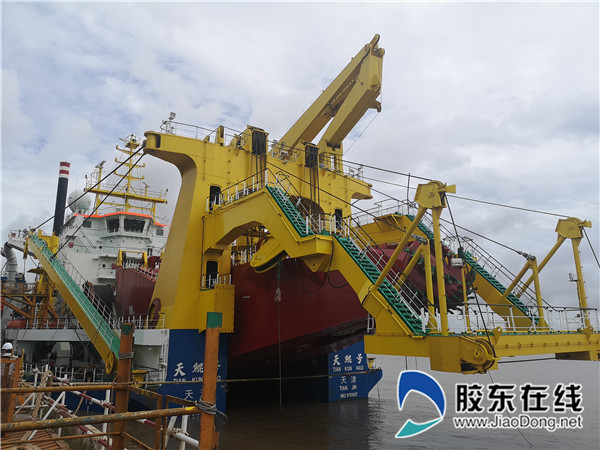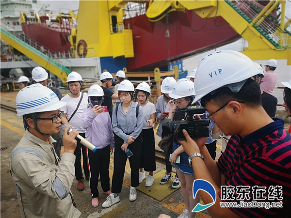 在啟東海工船舶工業(yè)園,隨著機(jī)械的轟鳴聲,呈現(xiàn)在采訪團(tuán)眼前的是船臺(tái)密布、塔吊林立、一派繁忙的景象。尤為引人矚目的,是大國(guó)重器“天鯤號(hào)”,巨大的船體以藍(lán)色為主,與碧海藍(lán)天共同構(gòu)成了一幅氣勢(shì)磅礴的畫(huà)卷。