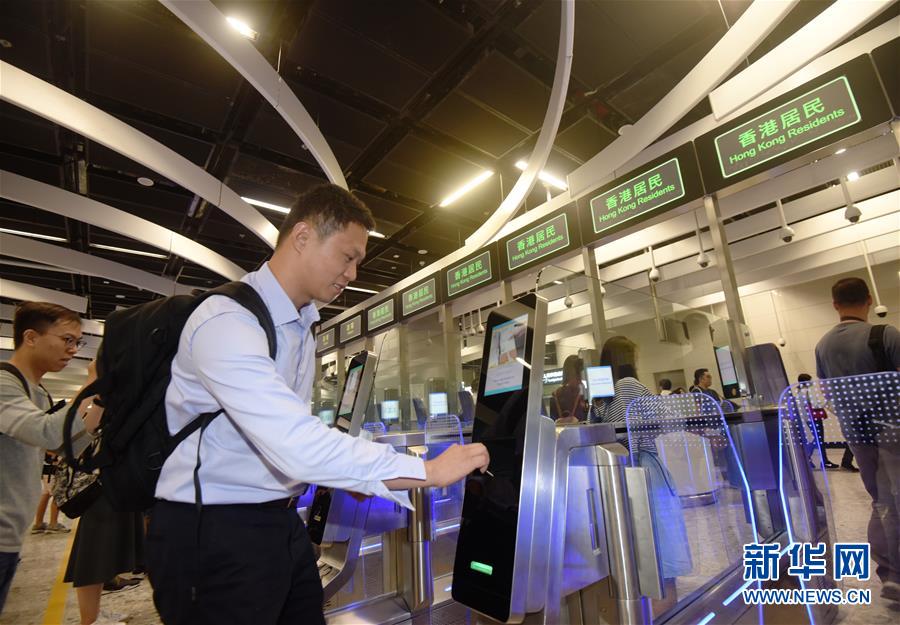 9月23日,在香港西九龍站,乘客在使用自動(dòng)閘機(jī)辦理離港通關(guān)。新華社發(fā)(王申 攝)