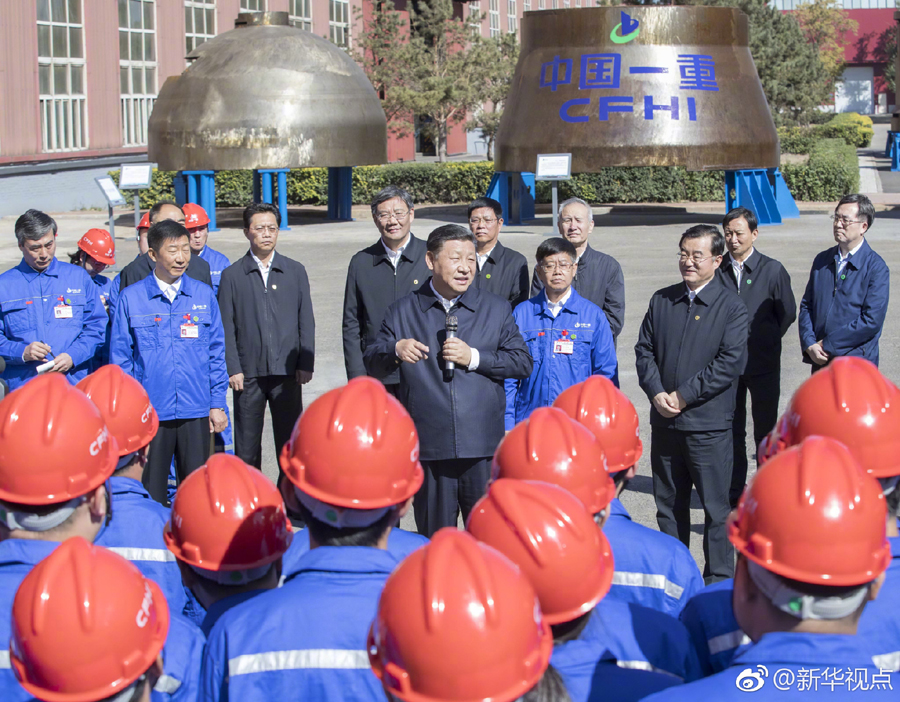 26日上午,正在黑龍江齊齊哈爾考察的習(xí)近平總書記來到中國一重集團,走進軋電制造廠車間、水壓鍛造車間,察看企業(yè)生產(chǎn)情況。習(xí)近平說,中國是有著近14億人口、960萬平方公里土地的大國,糧食要靠自己,實體經(jīng)濟要靠自己,制造業(yè)要靠自己。行百里路半九十,我們實現(xiàn)“兩個一百年”目標(biāo),沒任何時期比現(xiàn)在更接近,也沒有任何時期遇到現(xiàn)在這么多的挑戰(zhàn)和困難。國際上,先進技術(shù)、關(guān)鍵技術(shù)越來越難以獲得,單邊主義、貿(mào)易保護主義上升,逼著我們走自力更生的道路,這不是壞事,中國最終還是要靠自己。他勉勵大家,要肩負起歷史重任,制訂好發(fā)展路線圖,加強黨的領(lǐng)導(dǎo)、班子建設(shè),提高管理水平,調(diào)動各類人才創(chuàng)新創(chuàng)業(yè)積極性,把我們的事業(yè)越辦越好。(文字記者張曉松,攝影記者鞠鵬、王曄、燕雁)?