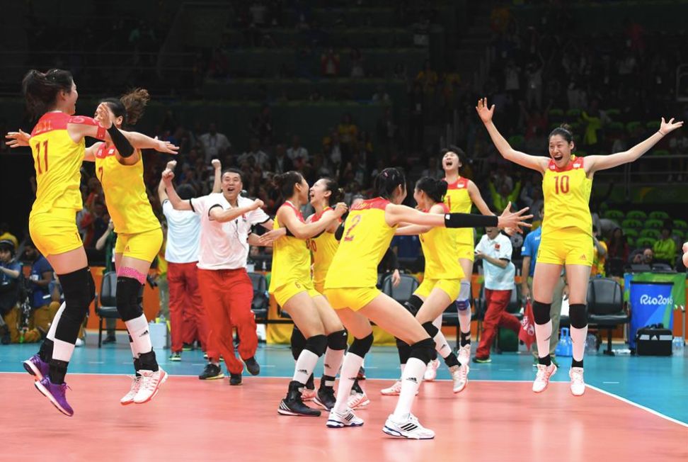 在2016年里約奧運(yùn)會女子排球決賽中,中國隊(duì)以3比1戰(zhàn)勝塞爾維亞隊(duì),奪得冠軍。新華社記者 李尕 攝