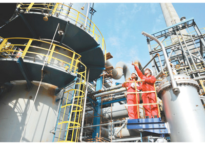 不斷追求綠色化,將排放濃度降至最低,企業(yè)這樣的環(huán)境行為理應得到認可和鼓勵。圖為中國石化西南油氣分公司元壩凈化廠工作人員在檢查排放治理設備。