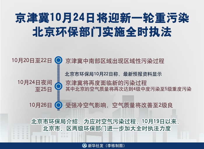 圖表:京津冀10月24日將迎新一輪重污染 北京環(huán)保部門(mén)實(shí)施全時(shí)執(zhí)法 新華社發(fā) 李棟 制圖