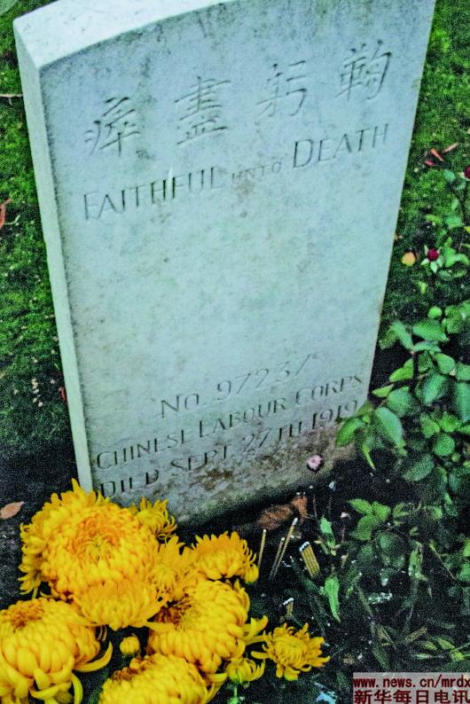 2008年一戰(zhàn)結(jié)束90周年紀(jì)念日的前一天,幾經(jīng)輾轉(zhuǎn),在英國(guó)墓地管理委員會(huì)的幫助下,程玲和丈夫、女兒終于找到了畢粹德長(zhǎng)眠于法國(guó)索姆省博朗古村的華工墓地。擺上家鄉(xiāng)的煙酒、點(diǎn)心、冬棗、高粱飴、芝麻餅,燒紙、點(diǎn)香、磕頭,口中不斷默念——程玲一家用家鄉(xiāng)最傳統(tǒng)的方式,告慰從未謀面的爺爺。