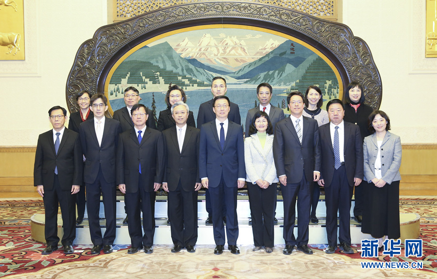 11月21日,中共中央政治局常委、國務(wù)院副總理韓正在北京人民大會堂會見香港特別行政區(qū)公務(wù)員事務(wù)局局長羅智光率領(lǐng)的特區(qū)政府常任秘書長和部門首長內(nèi)地研修訪問團全體成員。 新華社記者姚大偉攝