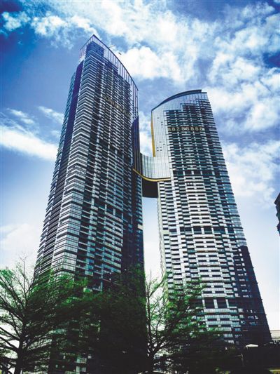創(chuàng)新之城從不缺乏創(chuàng)新人才。在東海國際公寓施工中,要數(shù)空中連廊連接最難,要將總重約700噸的鋼結(jié)構(gòu)連廊提升至180米的高空處。經(jīng)過長達(dá)半個月的討論和研究,邵寶奎和同事最終決定采用液壓整體提升技術(shù),先在地面上將連廊拼接完畢,最后一次性提升至高空。這在工地施工中還很少使用。