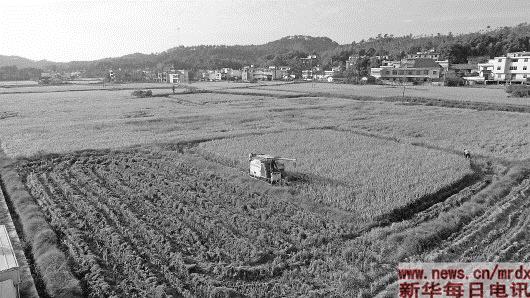 ▲近日,興國(guó)縣杰村鄉(xiāng)韶溪村碧桂園水稻種植基地的200畝高標(biāo)準(zhǔn)示范農(nóng)田正在實(shí)施機(jī)械化收割。