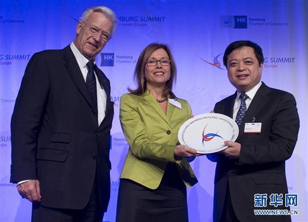 南存輝在第七屆中歐論壇德國(guó)漢堡峰會(huì)上獲“中歐可持續(xù)發(fā)展獎(jiǎng)”(2016年11月攝)。?新華社發(fā)