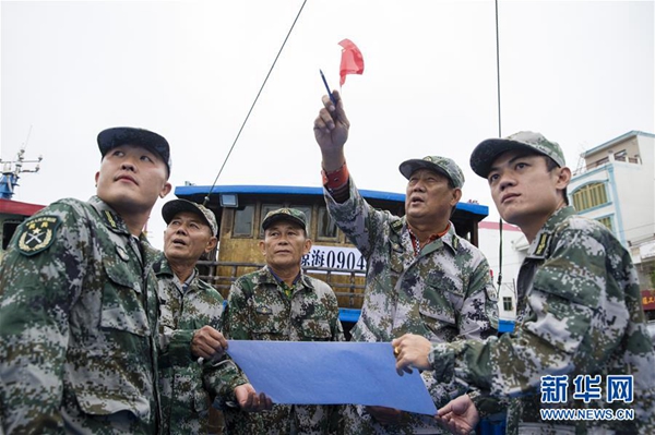 海南省瓊海市潭門鎮(zhèn),東面環(huán)海,南接博鰲,這里是王書茂的家鄉(xiāng)。史料記載,潭門漁民自秦代開始便世世代代在南海打魚,稱南海為“祖宗?!?。作為潭門海上民兵連副連長的王書茂,每年有一多半時間在海上度過,由于熟悉當(dāng)?shù)厣缜槊袂?,他多次?zhí)行急難險重任務(wù),每次都沖鋒在前,出色完成任務(wù)。44年的漁業(yè)生涯中,共組織漁民抵御臺風(fēng)120多場,對600多位漁民實施了救援,還參加了多處南沙島礁的建設(shè)?!氨M管危險,但我們從來沒有放棄過守護(hù)和耕耘南海?!蓖鯐f。