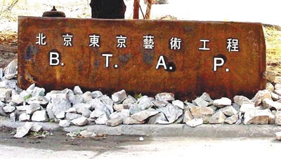 在靠近尤倫斯藝術(shù)中心的一棵樹下,一個鐵鑄的牌子上寫著“北京東京藝術(shù)工程B.T.A.P.”,這是798第一塊地域意義上的牌子。2002年北京東京藝術(shù)工程開幕的時候,由黃銳等藝術(shù)家籌資所立。