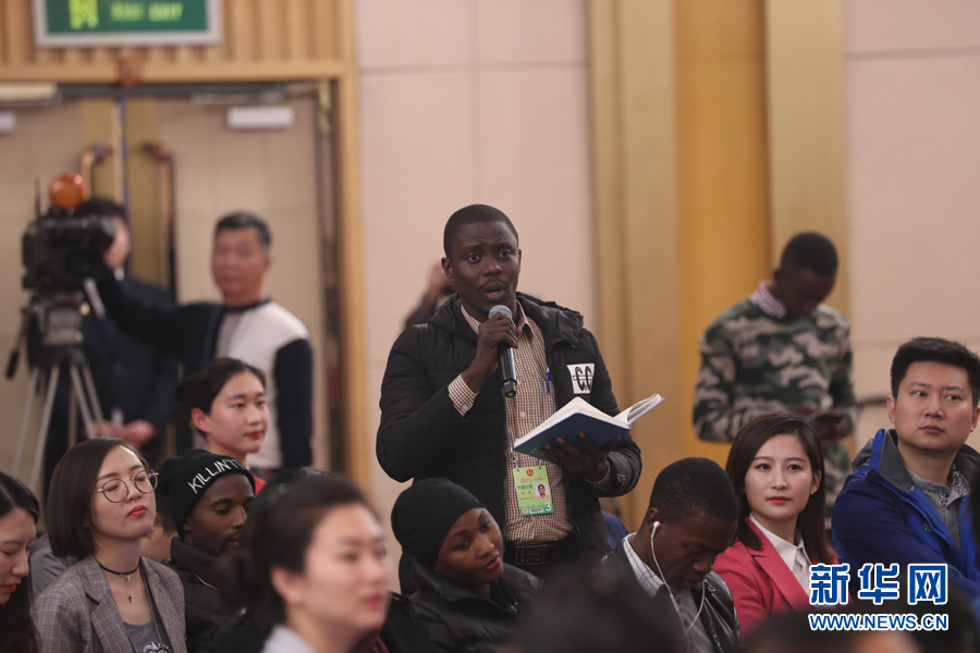 十三屆全國人大一次會議新聞中心于3月7日在梅地亞中心多功能廳舉行記者會,邀請農(nóng)業(yè)部部長韓長賦,農(nóng)業(yè)部新聞發(fā)言人、辦公廳主任潘顯政就“實施鄉(xiāng)村振興戰(zhàn)略 推動農(nóng)業(yè)轉(zhuǎn)型升級”的相關(guān)問題回答中外記者的提問。圖為外國記者提問。新華網(wǎng)/中國政府網(wǎng) 陳杰 攝